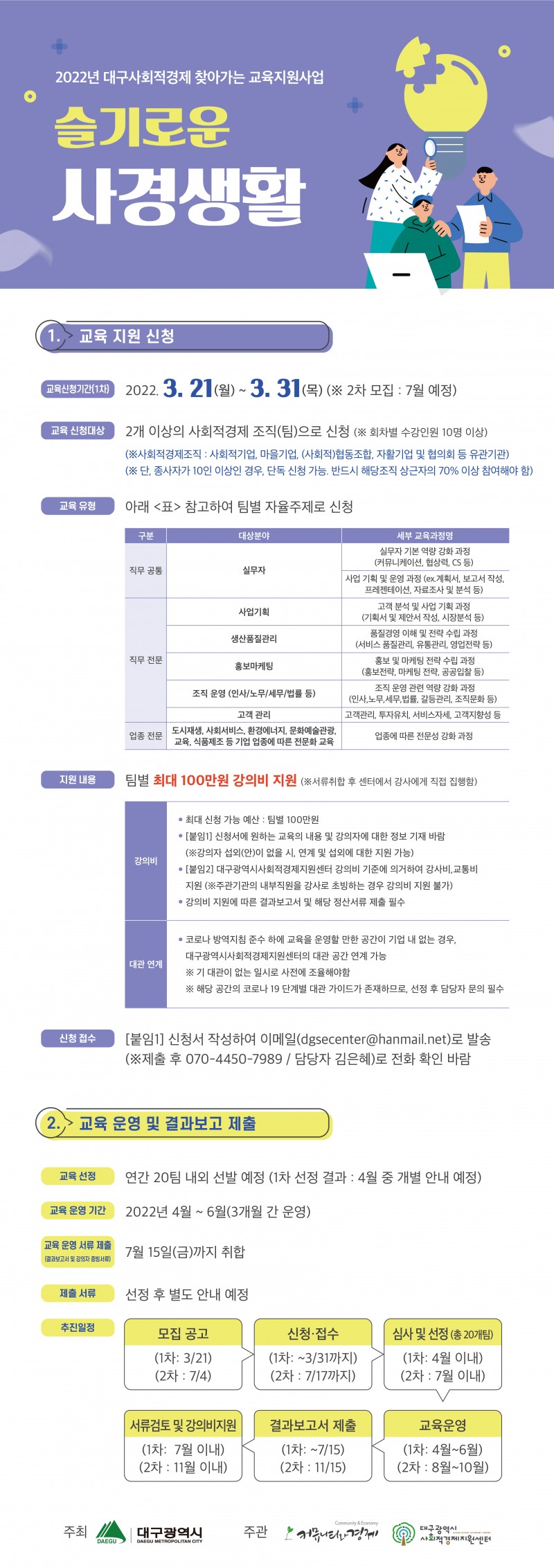 커뮤니티와경제2022년 대구 사회적경제 찾아가는 교육지원사업 " 슬기로운 사경생활 " 신청서 접수 (~3/31)