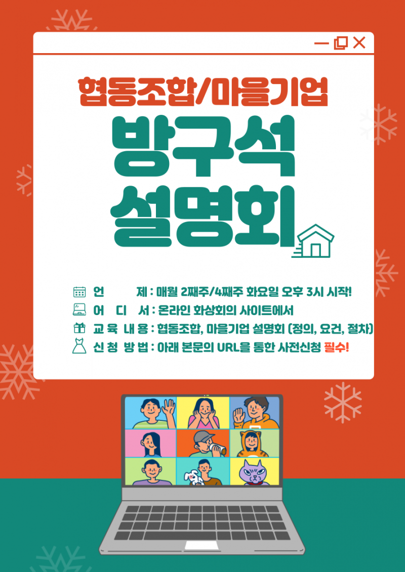 협동조합과 마을기업에 대해 관심 있는 분들의 많은 참여 바랍니다.